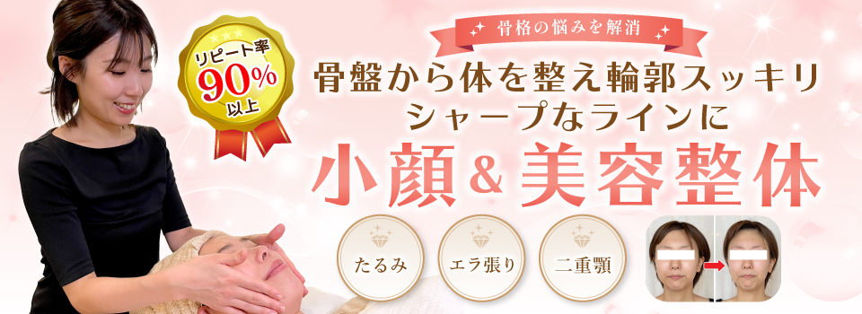 お顔は背骨を通し骨盤に繋がっているので骨盤から整える事で更に小顔に、より長持ちする秘訣となっています!